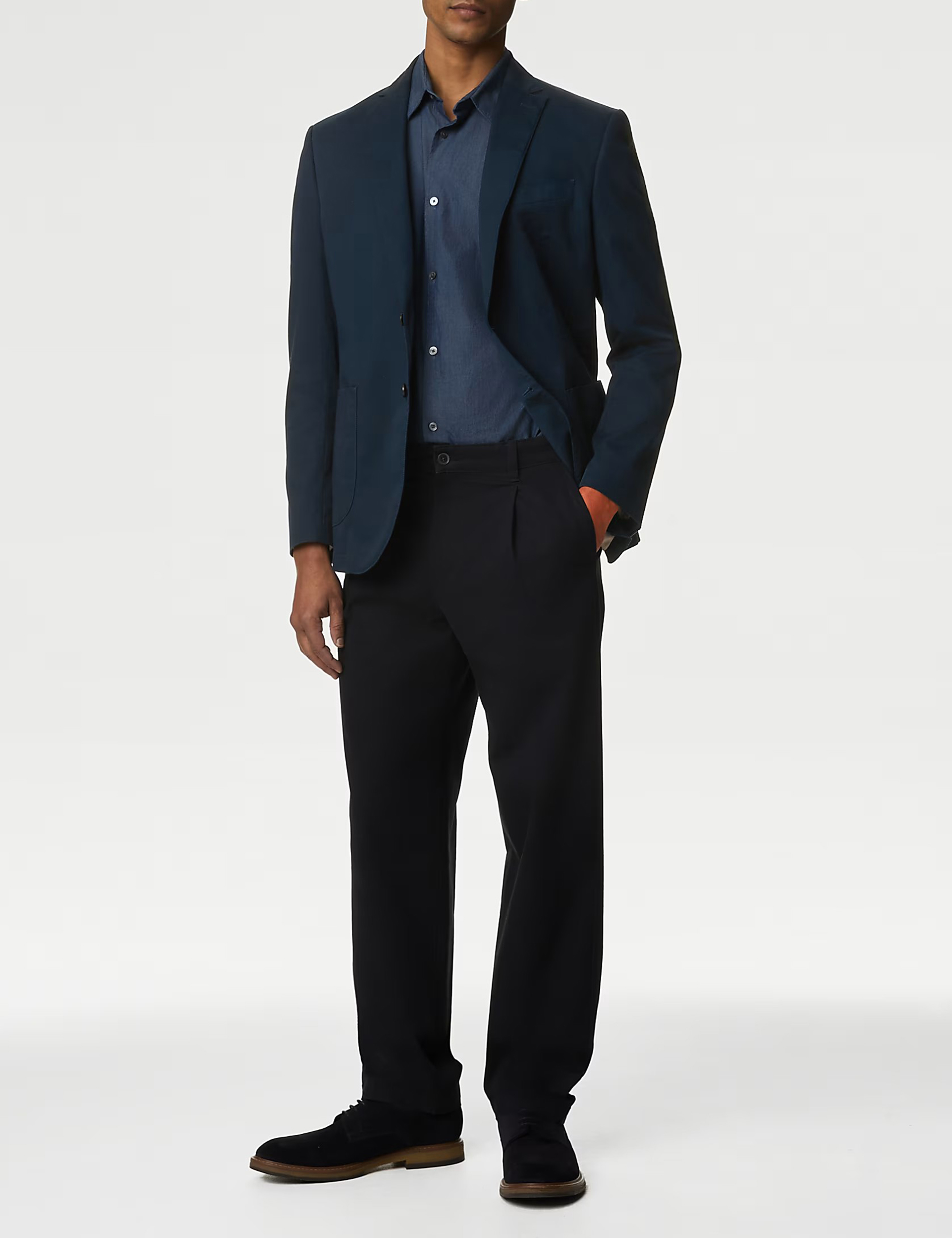 This smart blazer is made from pure cotton for a soft and breathable feel. It's designed in a single-breasted style, with two horn-style buttons for a classic look. The front patch pockets give a laid-back feel, while edge stitching lends subtle detail. This piece is complete with smart notched lapels and back vents for easy movement.