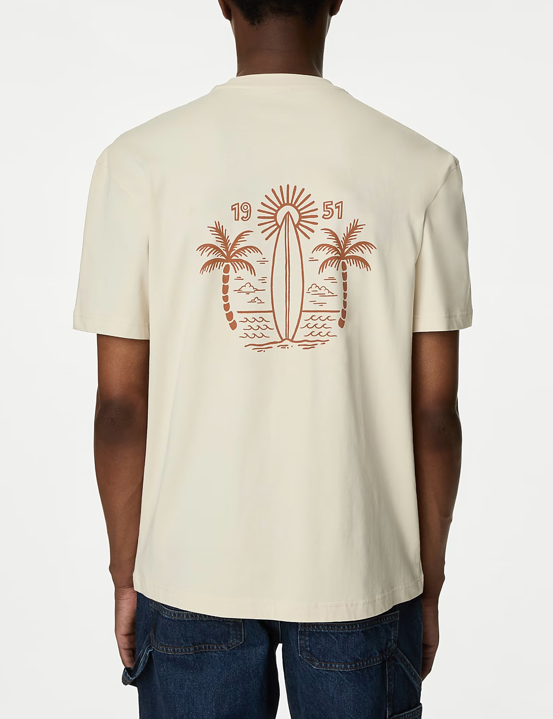 Show your love for surfing and the States with this smooth and breathable pure cotton t-shirt. Comfy regular fit. Classic crew neck. Graphic features sand, sea and a surfboard in the South Beach sunshine.